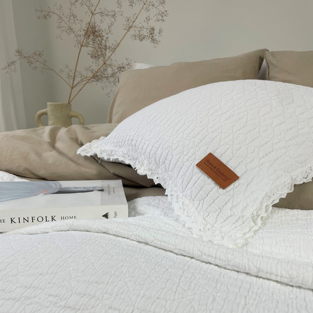 Een zeldzaam romantisch kussensloopje van Town and Country met een kantrandje, net als de sprei. Heb je je interieur in brocante of landelijke stijl, dan past dit romantische kussentje sowieso bij jou. Het witte kussentje is stijlvol te combineren in vele interieurs . Het materiaal is 100% katoen, mooie kleinschalige productie uit Portugal, zoals alles van Town & Country met aandacht en zorg gemaakt voor jou.